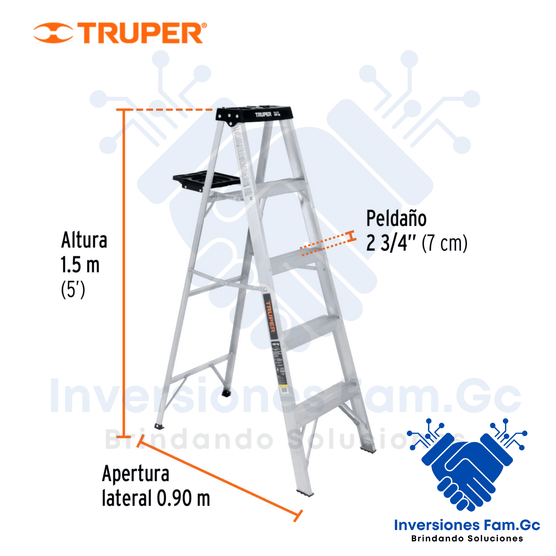 | Modelo / Código | Escalera de tijera tipo III 4 escalones y bandeja, Truper CÓDIGO: 16742 – CLAVE: EST-34 |