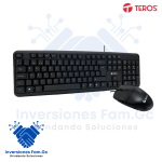 Mejora tu productividad con el Kit Teclado y Mouse Teros TE4062N. Este set incluye un teclado estándar en español de 105 teclas con arquitectura de membrana y un mouse ergonómico. Ambos cuentan con interfaz USB y cables de 1.5 m para máxima comodidad. Diseño compacto y ligero en color negro: teclado (40 x 14 x 2.5 cm, 364 g) y mouse (19.5 x 6 x 3.5 cm, 68 g).